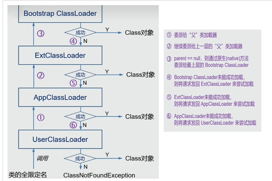 加载优先级:当一个类加载器需要加载一个类时,它首先将加载请求委派给其父类加载器。如果父加载器能够加载该类,那么就直接返回该类;否则,才由子加载器尝试加载。这样一层一层的委派下去,直到父加载器无法加载或者到达最顶层的启动类加载器。